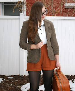Shorts: Urban Outfitters, Tights: Hue, Glasses: Warby Parker